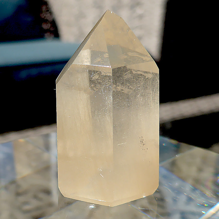 This 1.25 inch high Polished Golden Angel Hair Rutile Isis Channeling Generator from Brazil, weighing 52 grams, or 1.8 ounces, exhibits a well formed, flawless termination tip and shaft, and has a beautiful finish.