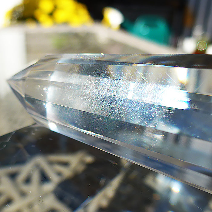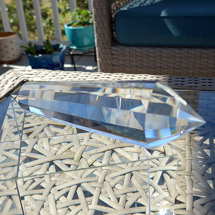 This precision light instrument, with a unique cut based upon the specifications of legendary scientist and crystal healer Marcel Vogel, is a powerful subtle energy tool, and can be used for many kinds of healing work as well as for meditation.