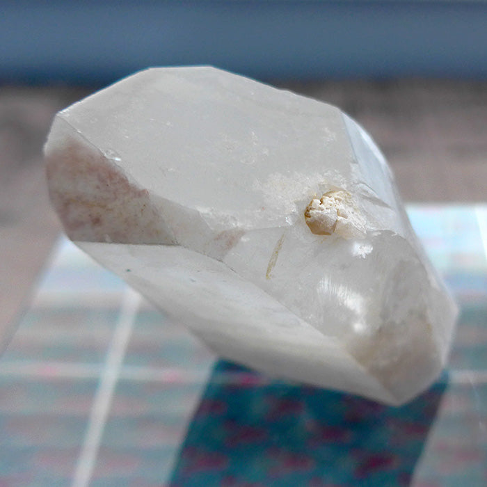 Channeling crystals exhibit a distinctive seven sided face on the termination tip, opposite a triangular face.