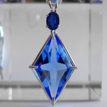 This stunning Siberian Blue Ascension Star Pendant is crowned with a beautiful Kyanite Oval Gemstone and set into Sterling Silver so that the stone can breathe. It comes with a sterling silver chain which sits at the thymus, between the throat and heart chakras where it will be of the utmost benefit. It comes in a velveteen jewelry box for safekeeping.