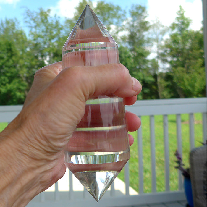 This precision light instrument, with a unique cut based upon the specifications of legendary scientist and crystal healer Marcel Vogel, is a powerful subtle energy tool, and can be used for many kinds of healing work as well as for meditation.
